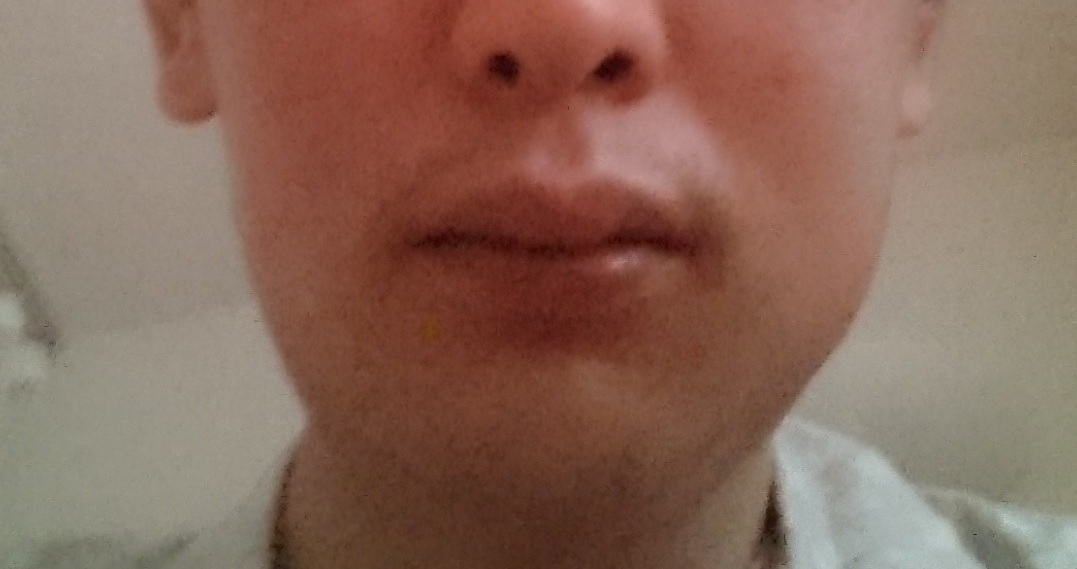 朝起きてすぐ撮った写真ですが、両ほほとも腫れています。すでに左ほほが腫れているのがはっきりわかります。(でもまだ序の口です。)