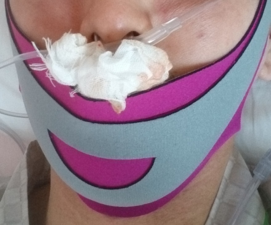 1週間後、状態を確認するために再び病院へ行き診察を受けましたが、このときもまだ開口障害は残ったままで口は2cmほどあけるのがやっとというところでしたが、10本の糸の内9本を抜糸し、また翌週診察を受けることになりました。